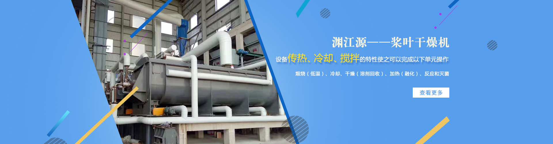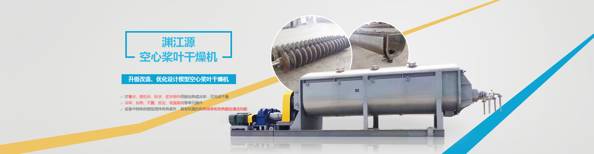 江蘇淵江源干燥工程有限公司專業生產空心槳葉干燥機的專業廠家,該機是一種空心槳葉式干燥設備,公司還開發(fā)了真空式槳葉干燥裝置;目前多用于環(huán)保中的污泥干燥,也可用于氯化鈉,電鍍,電池材料,碳酸鈣等物料的干燥;公司提供各種非標設備的設計、制造和安裝。產品廣泛應用于制藥、化工、食品、飼料、農藥、生物、電子等行業。